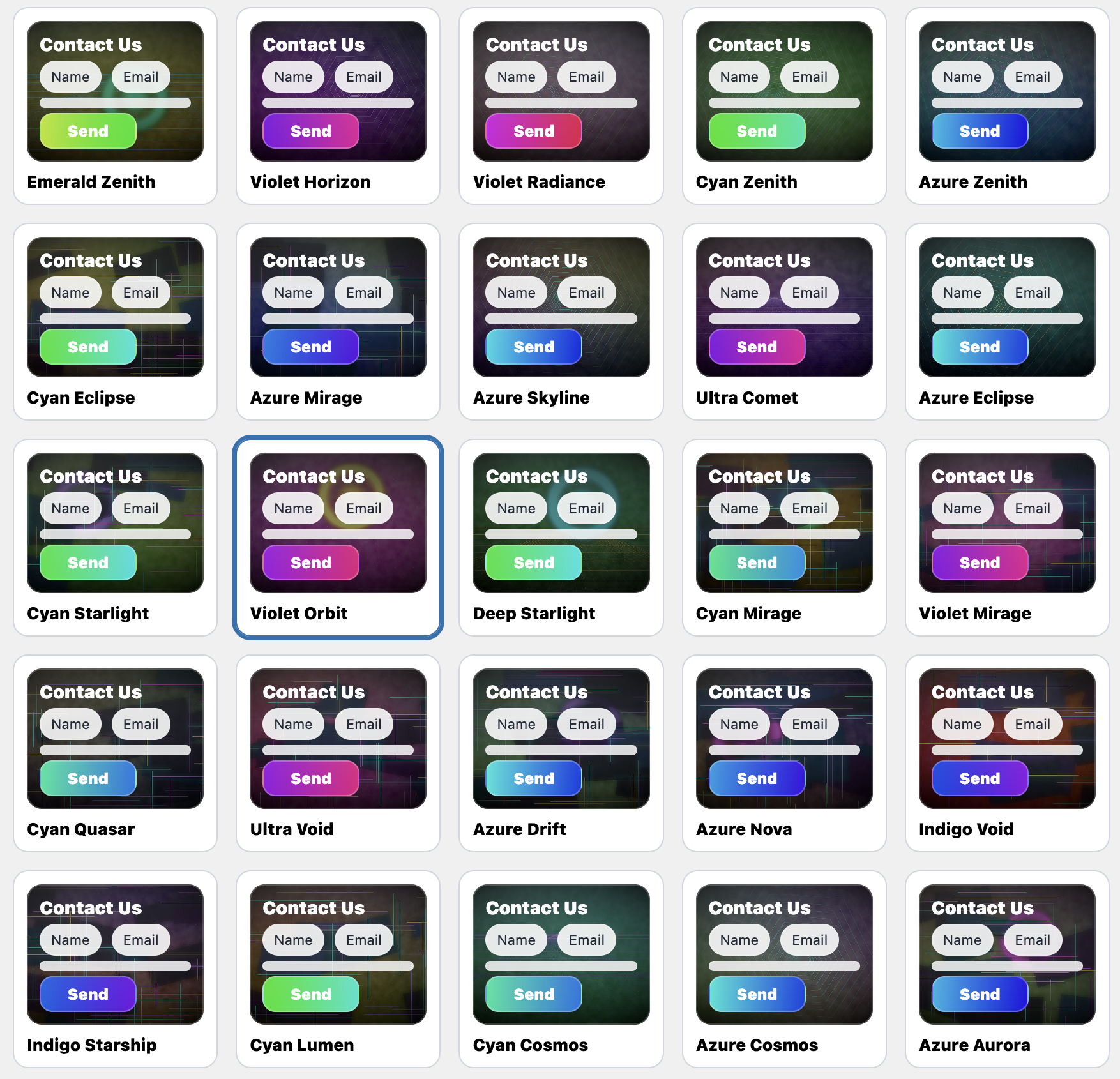 Instantly expand your contact form with 50 sci-fi image-backed themes. Each theme is designed to keep labels and inputs readable while looking