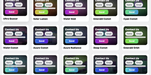 Every theme is a full makeover — background, inputs, labels and button styling.
