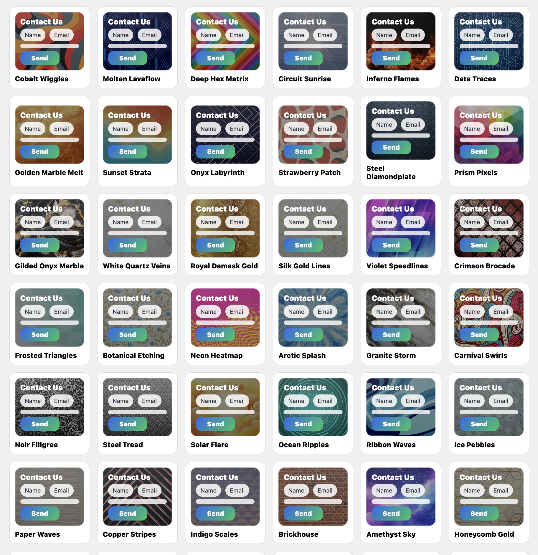 straight into your theme selector. Pick a vibe per form, per page — instantly.